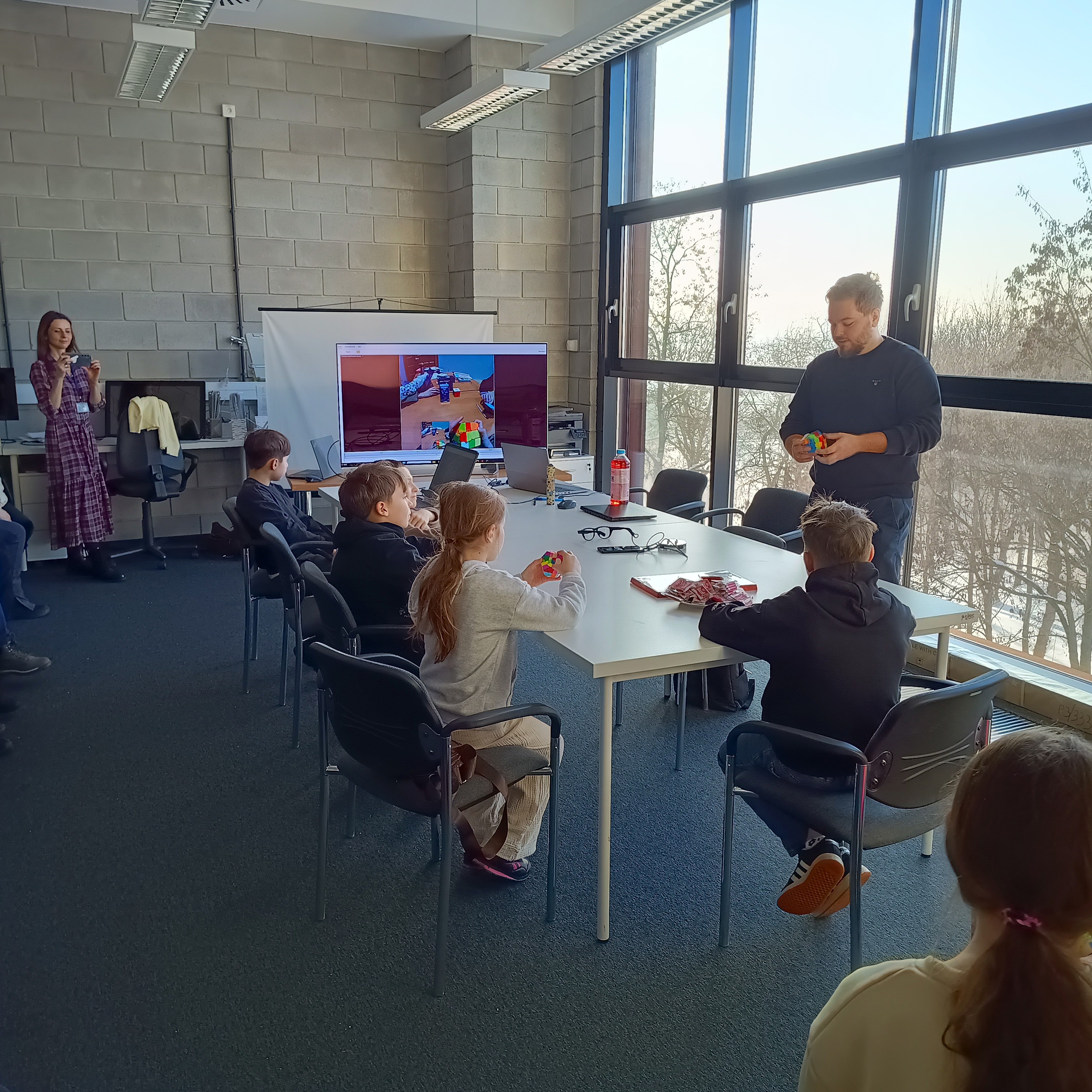 W dniu 19 stycznia 2026 r. w Laboratorium Ergonomii Interfejsów został przeprowadzony pokaz „Tajemnice eyetrackingu oraz Zabawy z Kodowaniem” dla dzieci szkolnych ze Szkoły Podstawowej nr 50 w Lublinie. Uczestnikom lekcji została wyjaśniona metoda eyetrackingu i omówiona jej historia. Następnie uczniowie mogli wziąć udział w pierwszym eksperymencie, podczas którego mieli do wykonania kilka zadań logicznych. W badaniu tym wykorzystano eyetracker stacjonarny. Po badaniu uczniom zaprezentowano wyniki w formie filmu z eksperymentu, map cieplnych i ścieżek skanowania. W kolejnym eksperymencie przeprowadzonym na tym samym urządzeniu wzrok osoby badanej przejął rolę wskaźnika myszy i służył do sterowania w prostych grach wspomagających komunikację u osób z wyzwaniami rozwojowymi. Uczestnikom zaprezentowany został też eyetracker mobilny, składający się z okularów połączonych ze smartfonem rejestrującym ruch oczu oraz scenę przed osobą badaną. Wykonano będzie kilka krótkich sesji badawczych, podczas których zarejestrowano fiksacje i sakady w momencie oglądania kostki Rubika przed jej ułożeniem oraz w trakcie jej układania. Ponadto przedstawiono tajniki układania kostek, w tym kostki Rubika 3×3. Przeprowadzone też pokaz na różnych typach kostek Rubika, między innymi na kostkach 2×2, 3×3, 4×4 oraz Pyraminx, Clock i Skewb.
