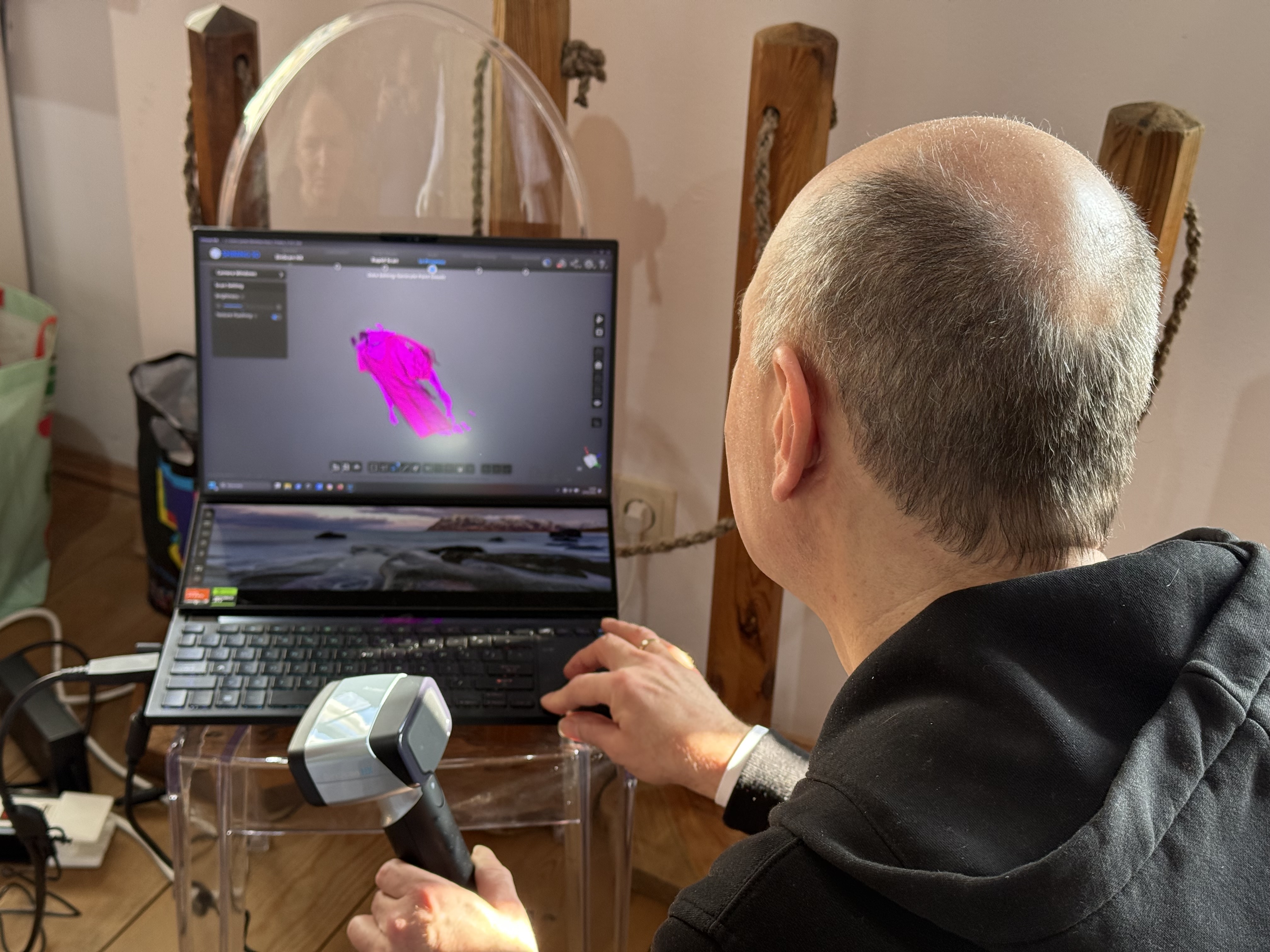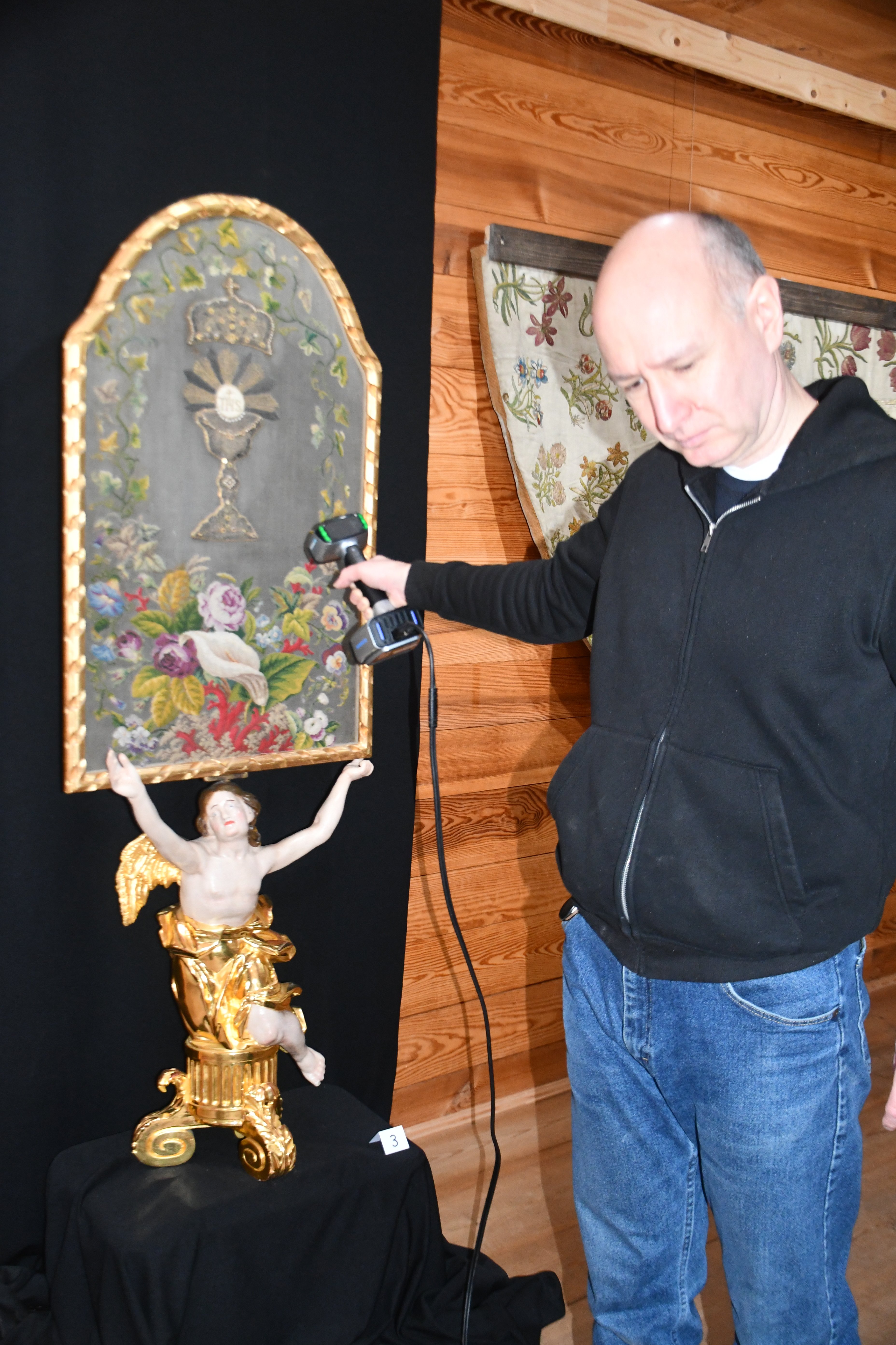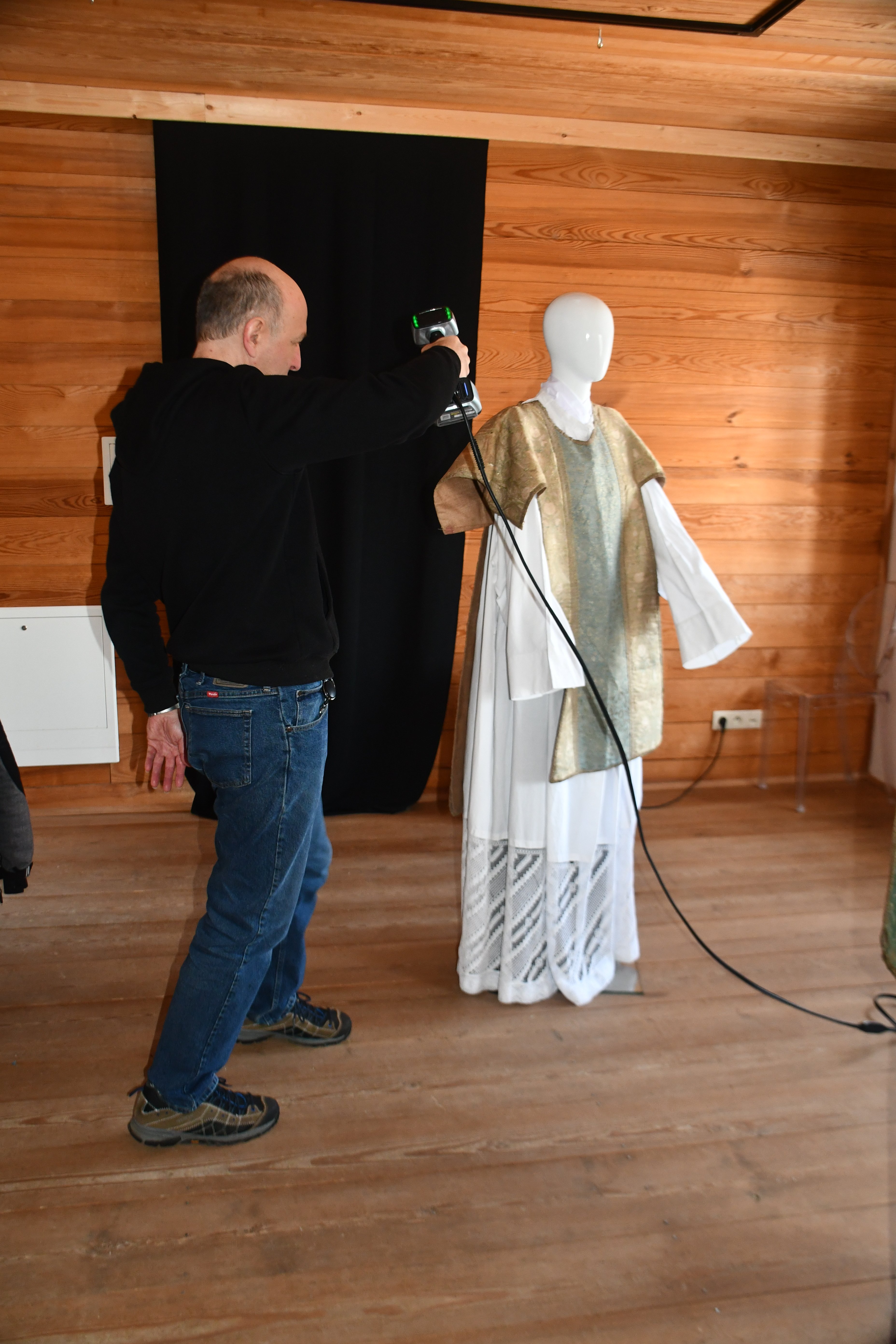 Pracownicy Katedry Informatyki związani z „Lab 3D” w składzie prof. uczelni Jerzy Montusiewicz oraz adiunkci: Jacek Kęsik i Kamil Żyła prowadzili trójwymiarowe skanowanie zabytkowych szat liturgicznych i innych akcesoriów liturgicznych wykonanych z haftowanych tkanin. W Muzeum Wsi Lubelskiej została zorganizowana czasowa wystawa pt. : „Tkaniny – ukryte piękno” ze zbiorów Muzeum Archiwizacji Lubelskiej. Skanowanie przeprowadzono w lutym 2026 r. w trakcie trzech wizyt studyjnych. Akwizycję danych wybranych eksponatów wykonano w 3. różnych technologiach: Structured Light Scanning (SLS) – 33 GB, Close-Range Photogrammetry (CRP) – 1,6 GB oraz Light Detection and Ranging (LiDAR) iPhone – 330 MB. Do skanowania SLS wykorzystano nowo zakupiony skaner EinScan HX firmy Shining 3D, do CRP – aparat Nikon D7500 z obiektywem o zmiennej ogniskowej Nikkor AF-S DX 18-140mm f/3,5-5,6G ED VR, zaś do LiDAR model telefonu iPhone 16 PRO MAX. Wynikiem przeprowadzonych działań grupy było wykonanie skanów 3D: 3. kap liturgicznych z XVIII i z XIX w., 2. dalmatyk (szata noszona przez diakonów) z XVII i XVIII w. oraz 4. ornatów pochodzące od XVIII do przełomu XIX/XX w. Ponadto wykonano skany dwóch umbraculum (przesłona z haftowanej tkaniny naciągnięta na ramę) oraz sukienki na puszkę.